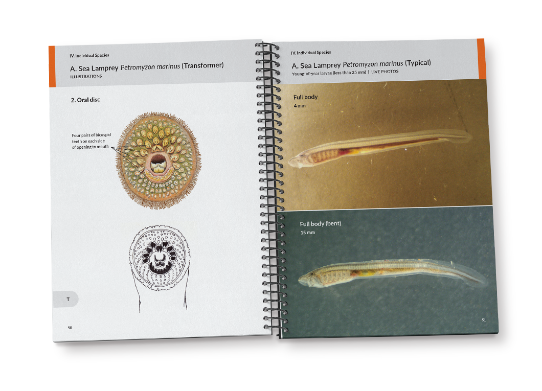 View BookThis guide book was made to help field workers identify larval lamprey, with extensive illustrations, and photos detailing different features and characteristics of each species.