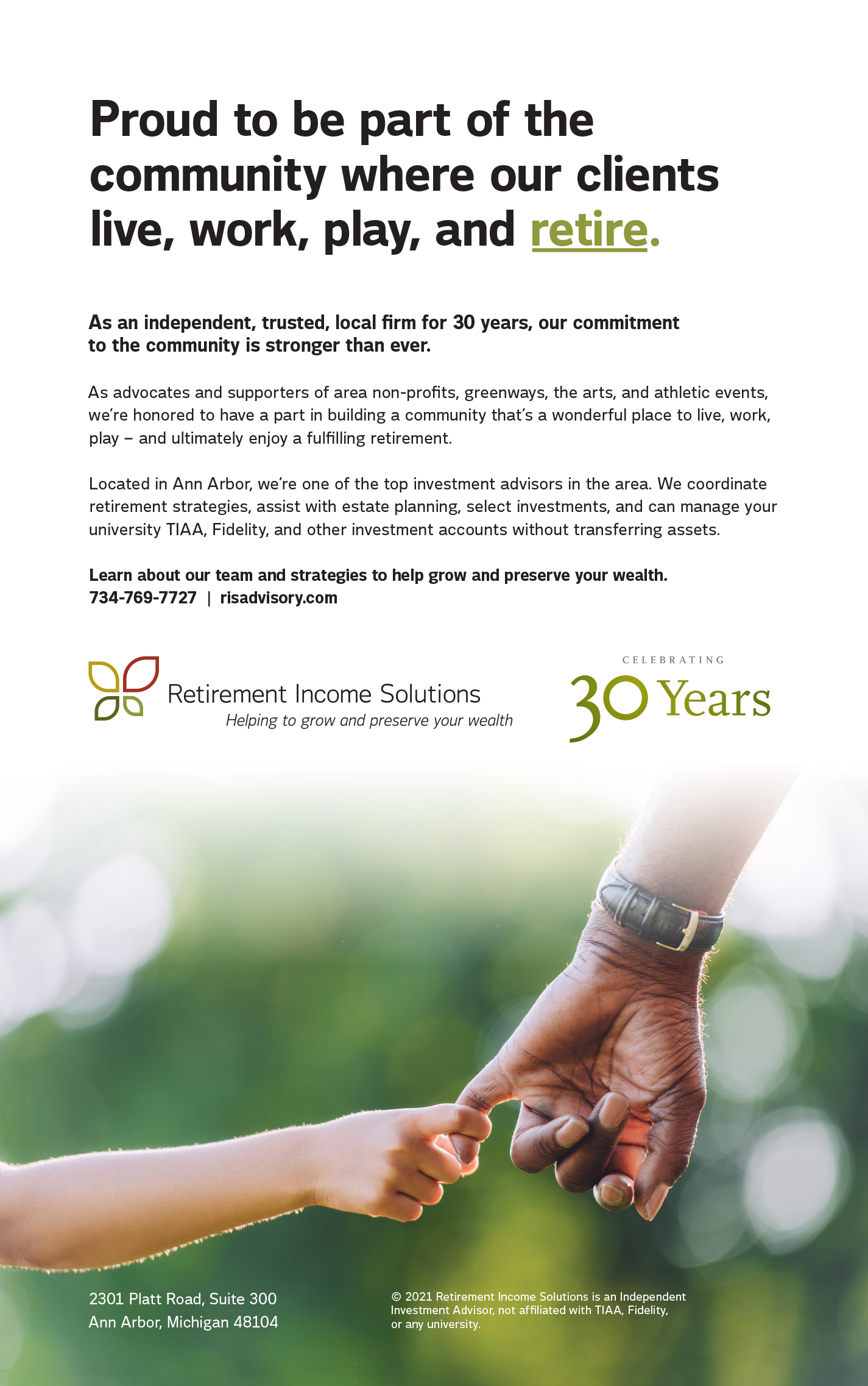 Working with the Ann Arbor community for over 30 years, Retirement Income Solutions is a trusted, locally owned firm and one of the top investment advisors in the area.